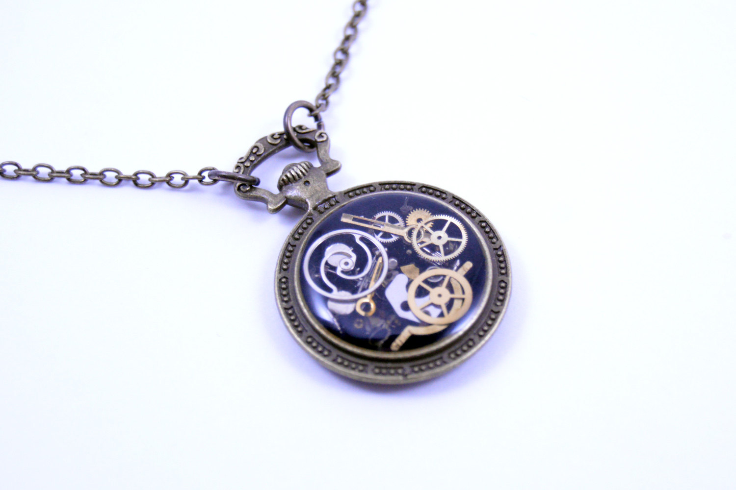 Handmade, one of a kind steampunk pendant, lovingly crafted and filled with real recycled watch parts to accent any steampunk outfit, cosplay, or spice up your wardrobe any day!