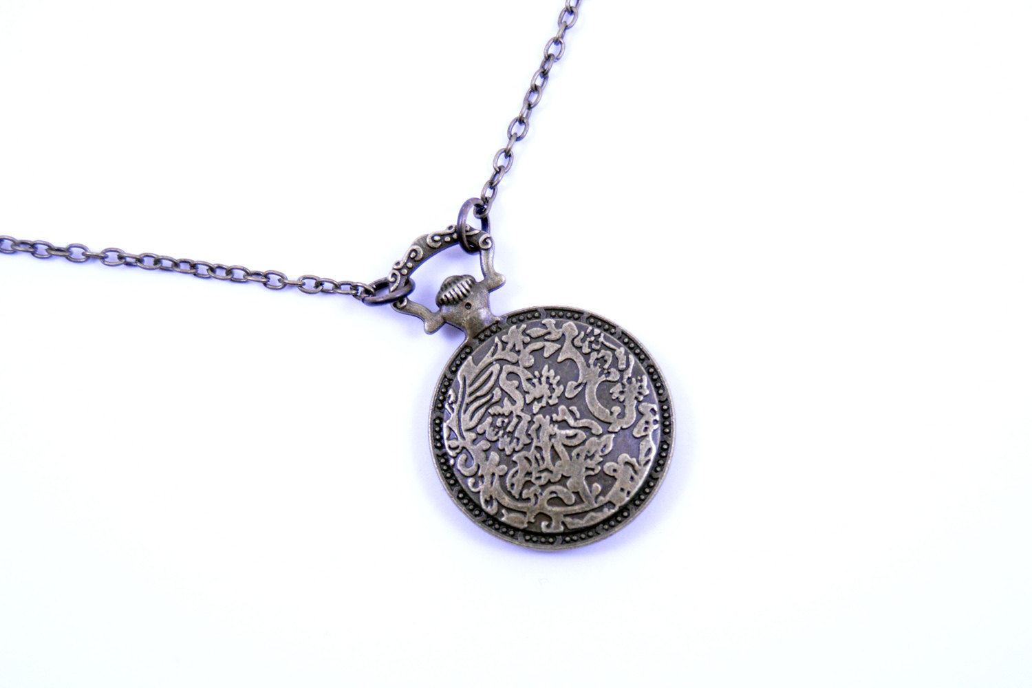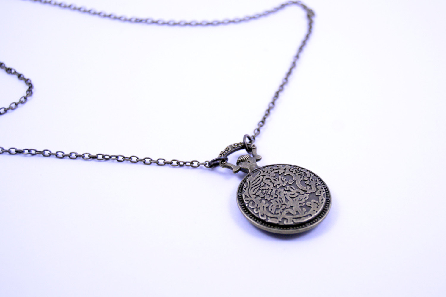 **This is not a working watch, it is just a pendant shaped like a pocket watch / photo on model is for example purposes only**