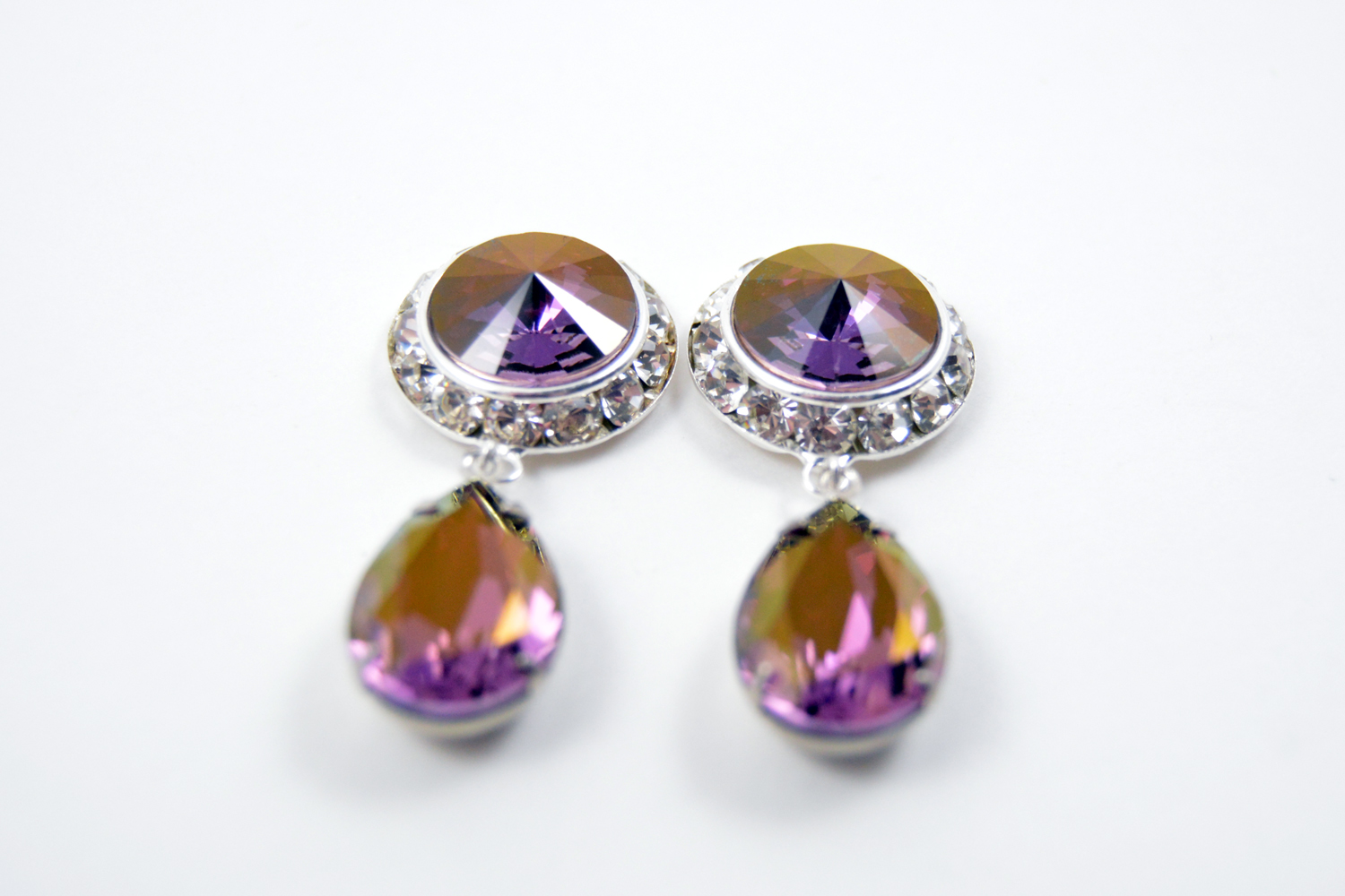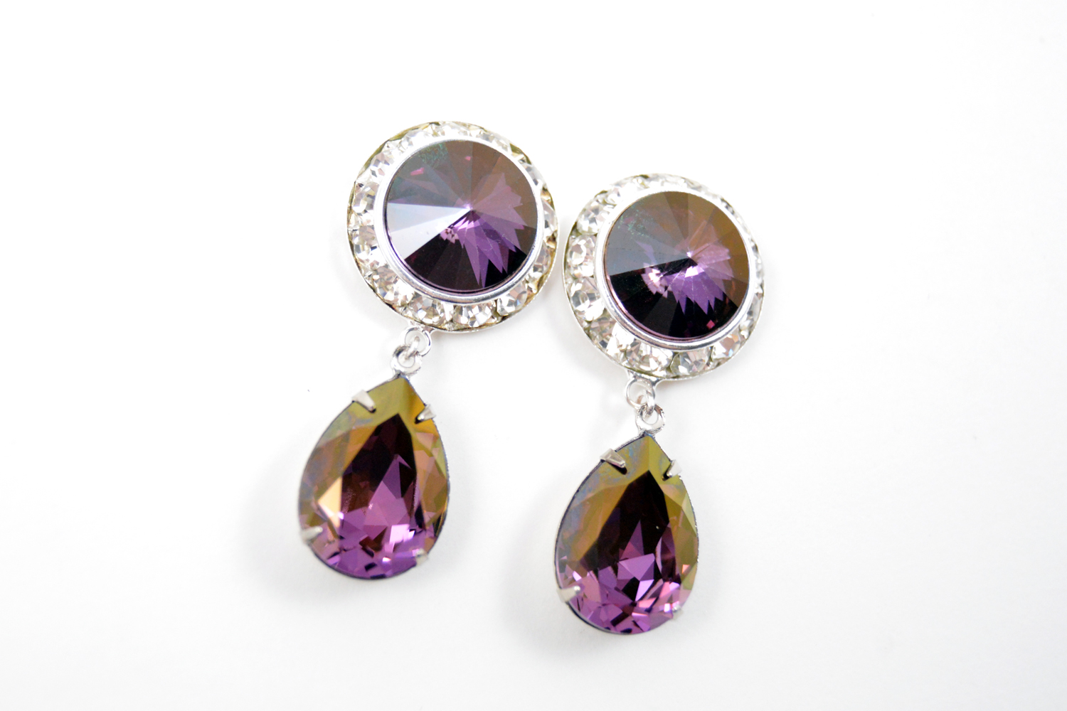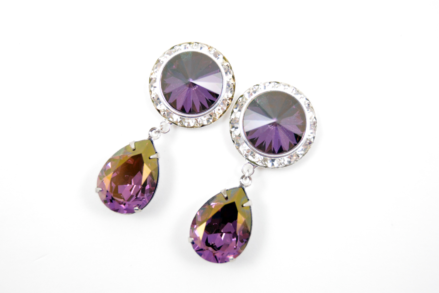 5/8 9/16 1/2 1 PAIR Lilac Shadow Silver Dangle Hanging Ear Plugs Gauges Tunnels or Studs Made With SWAROVSKI Elements