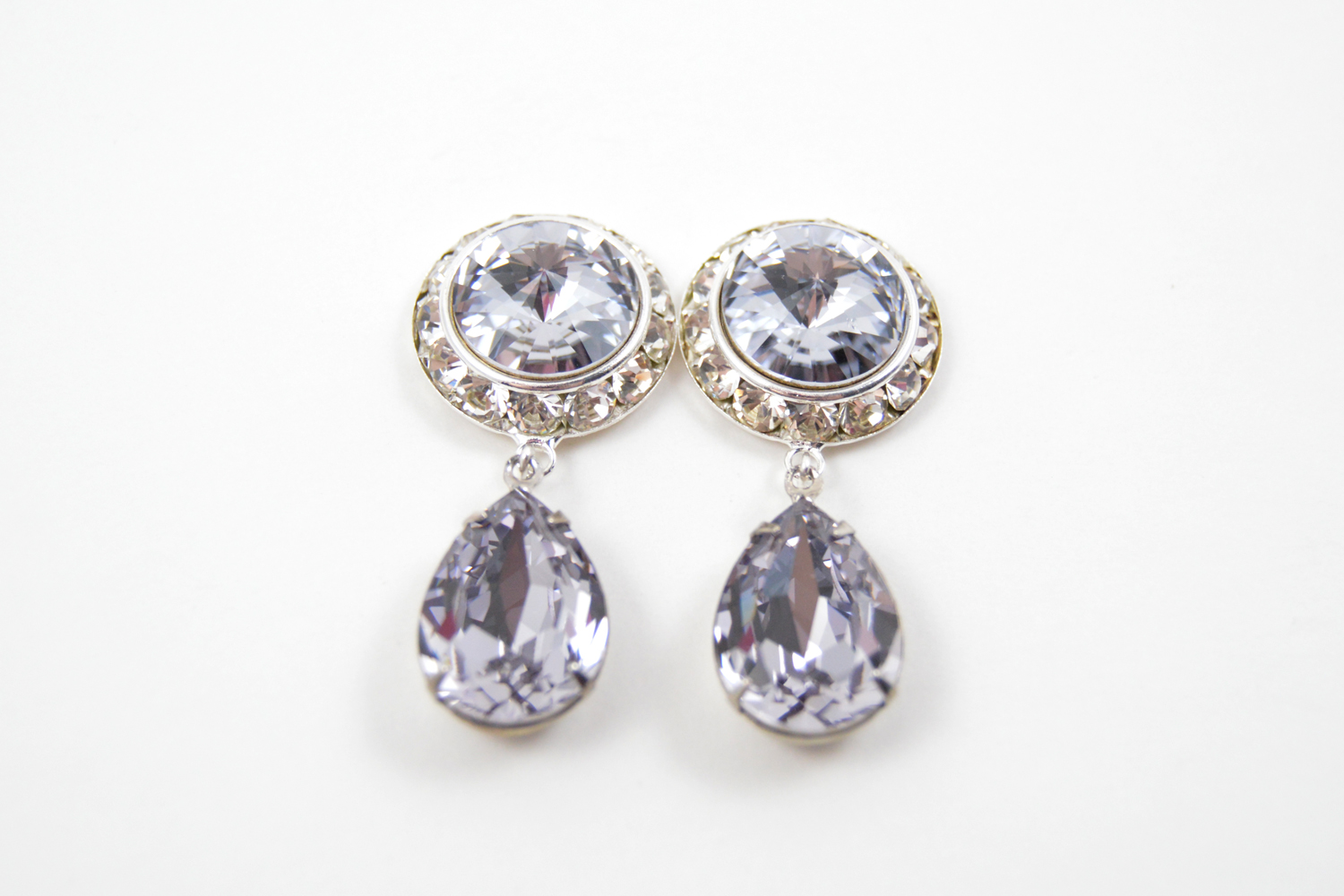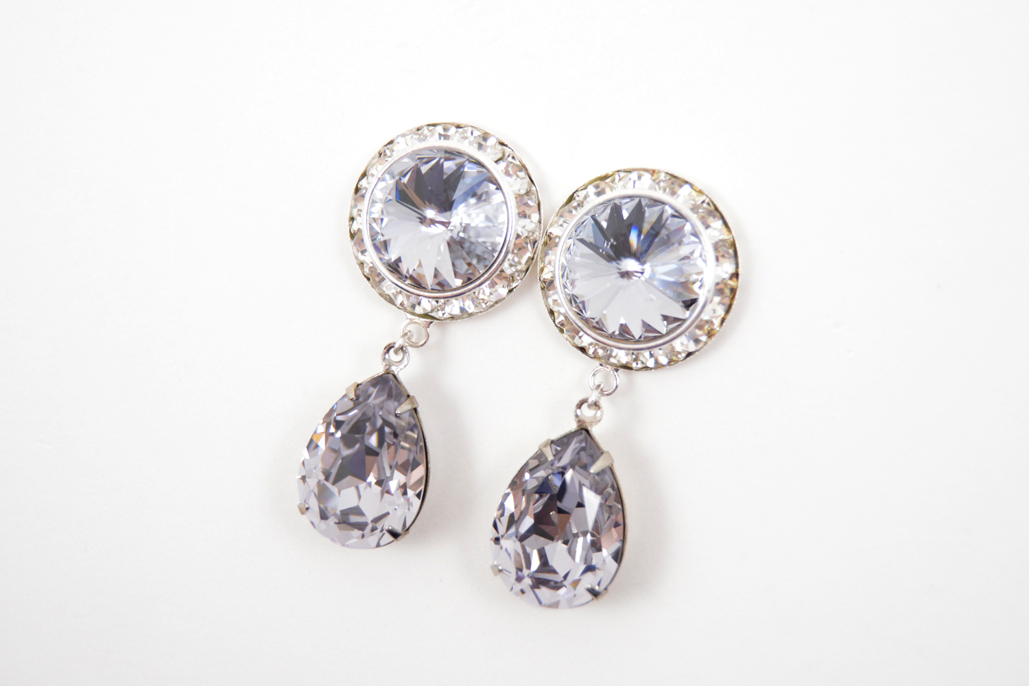5/8 9/16 1/2 1 PAIR Smoky Mauve Silver Dangle Hanging Ear Plugs Gauges Tunnels or Studs Made With SWAROVSKI Elements