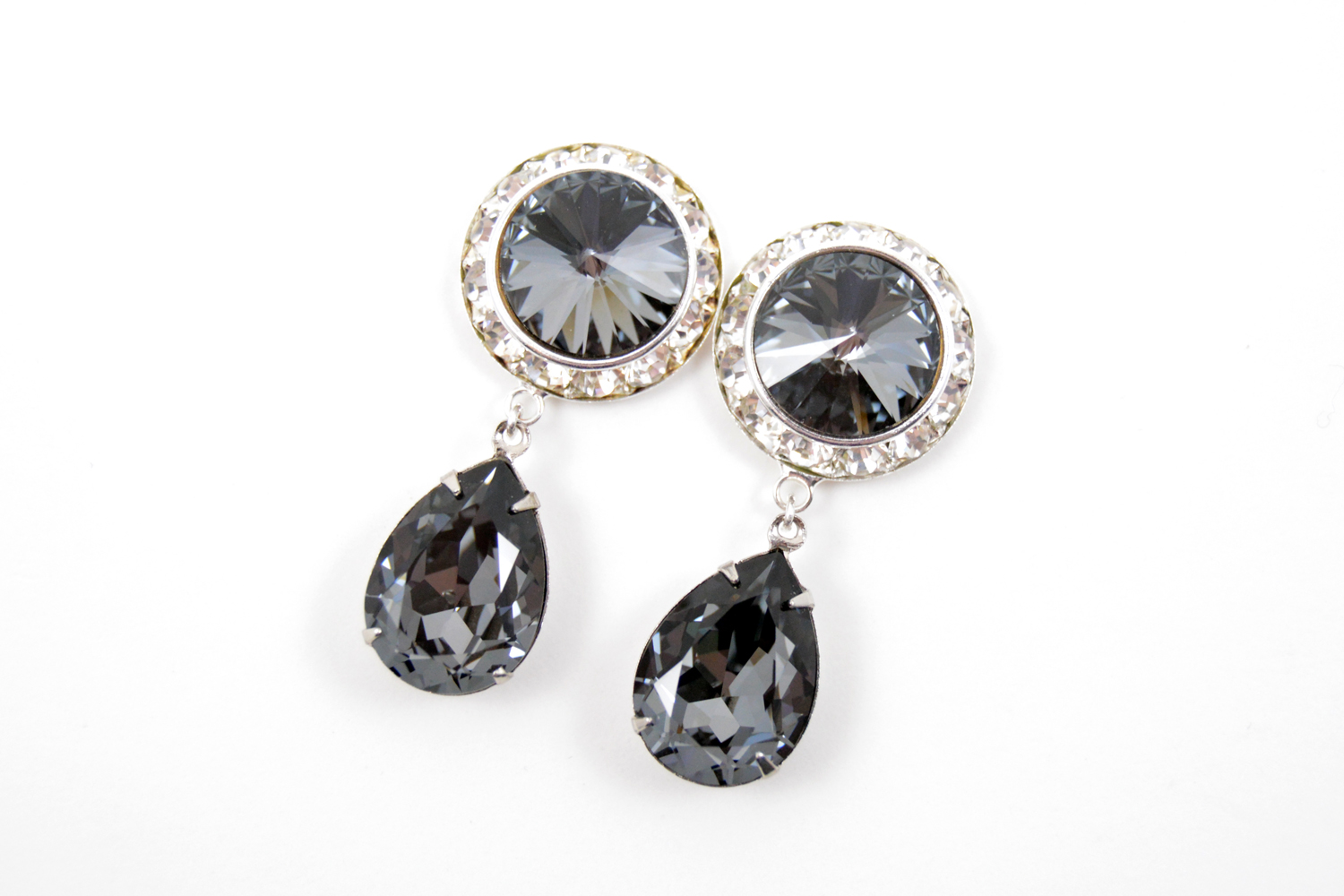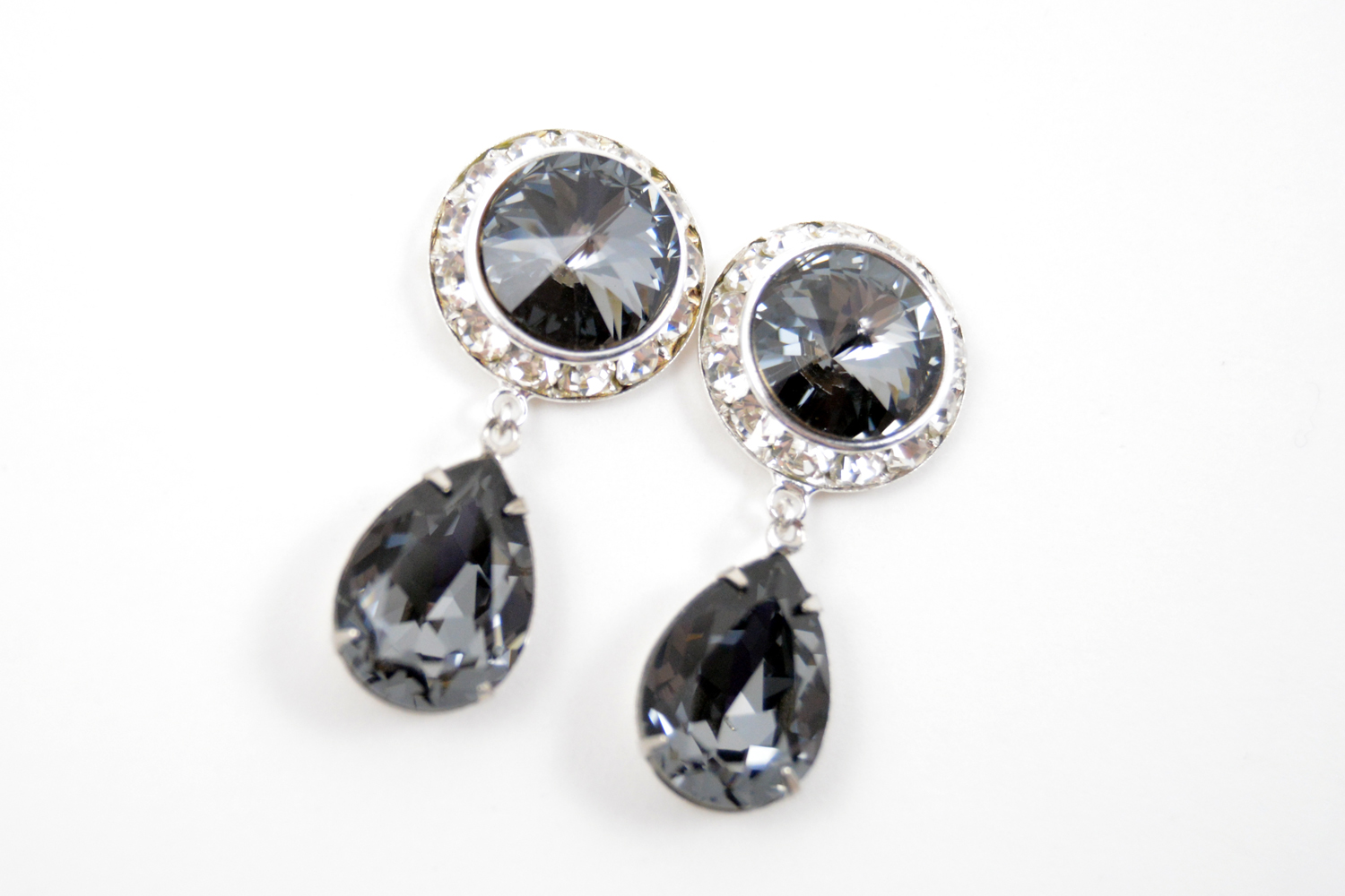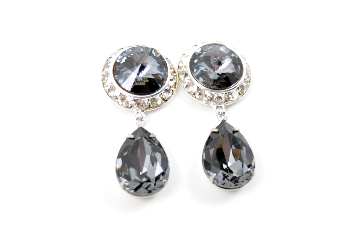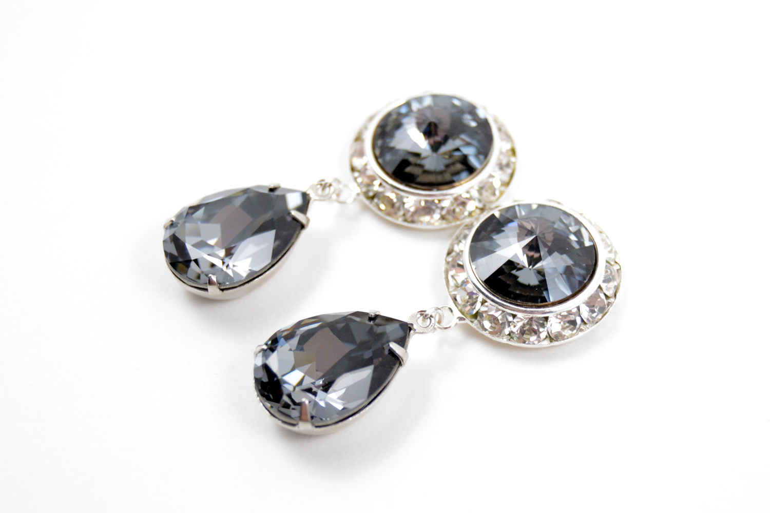 5/8 9/16 1/2 1 PAIR Crystal Night Silver Dangle Hanging Ear Plugs Gauges Tunnels or Studs Made With SWAROVSKI Elements