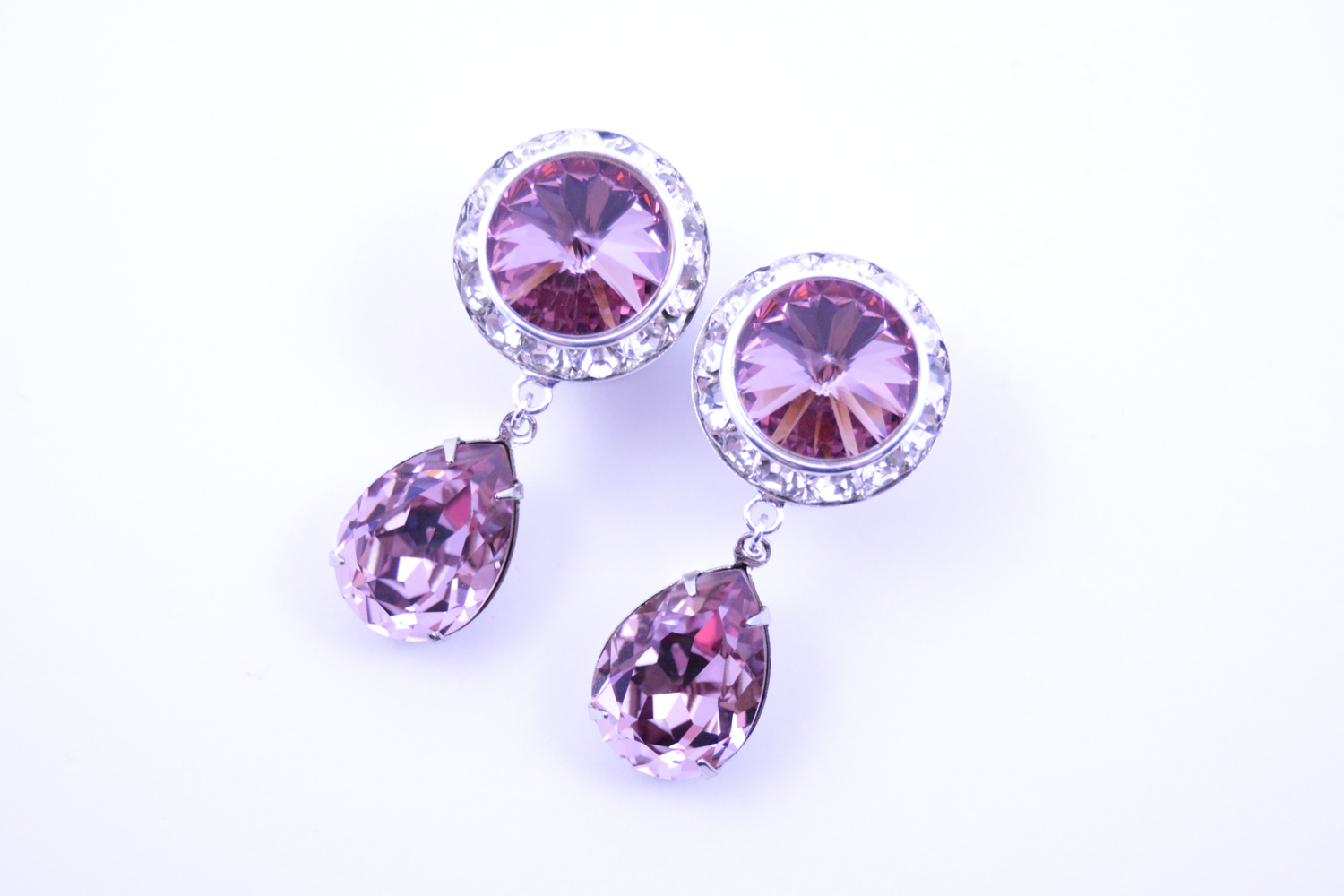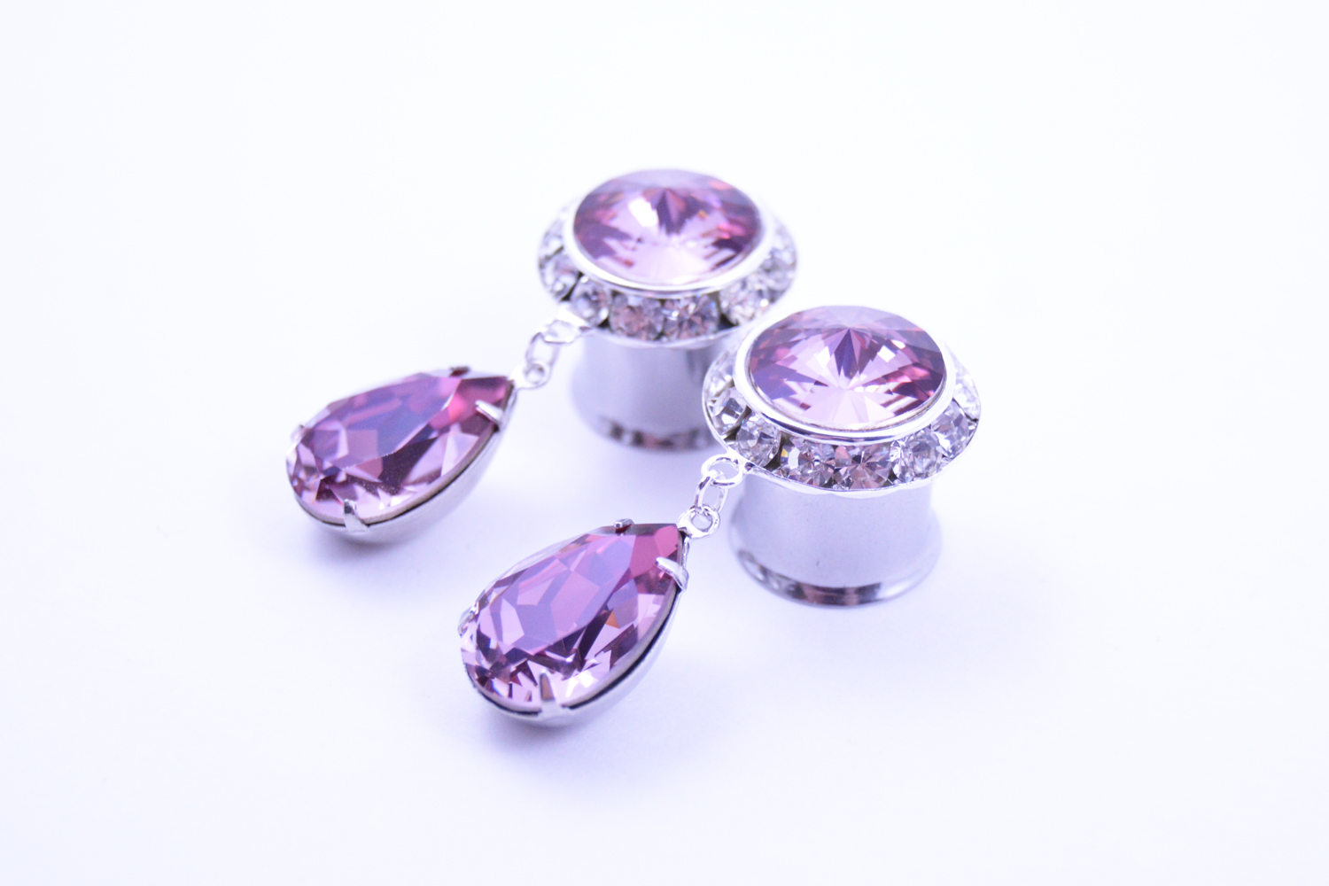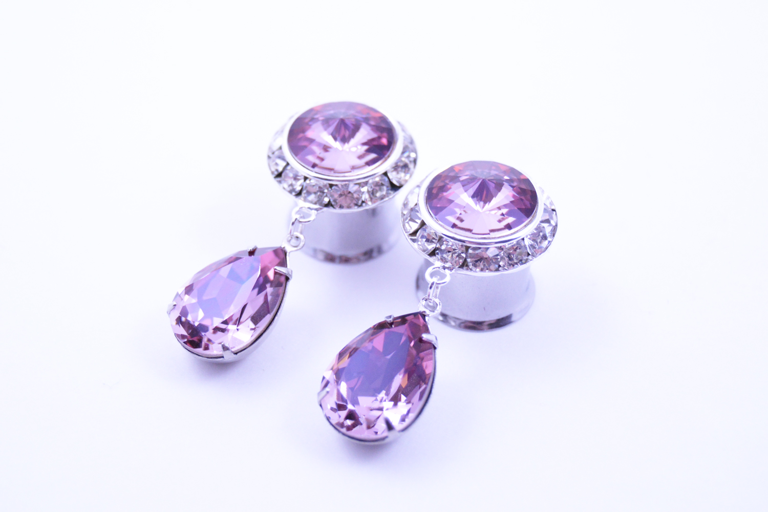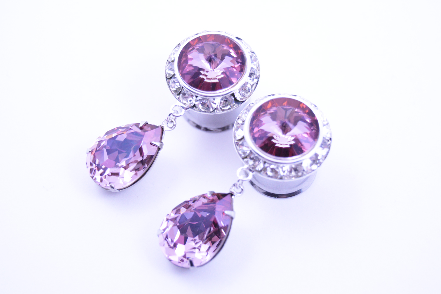 5/8 9/16 1/2 Antique Pink Crystal Silver Ear Dangle Plugs Gauges Tunnels or Studs Made With SWAROVSKI Elements