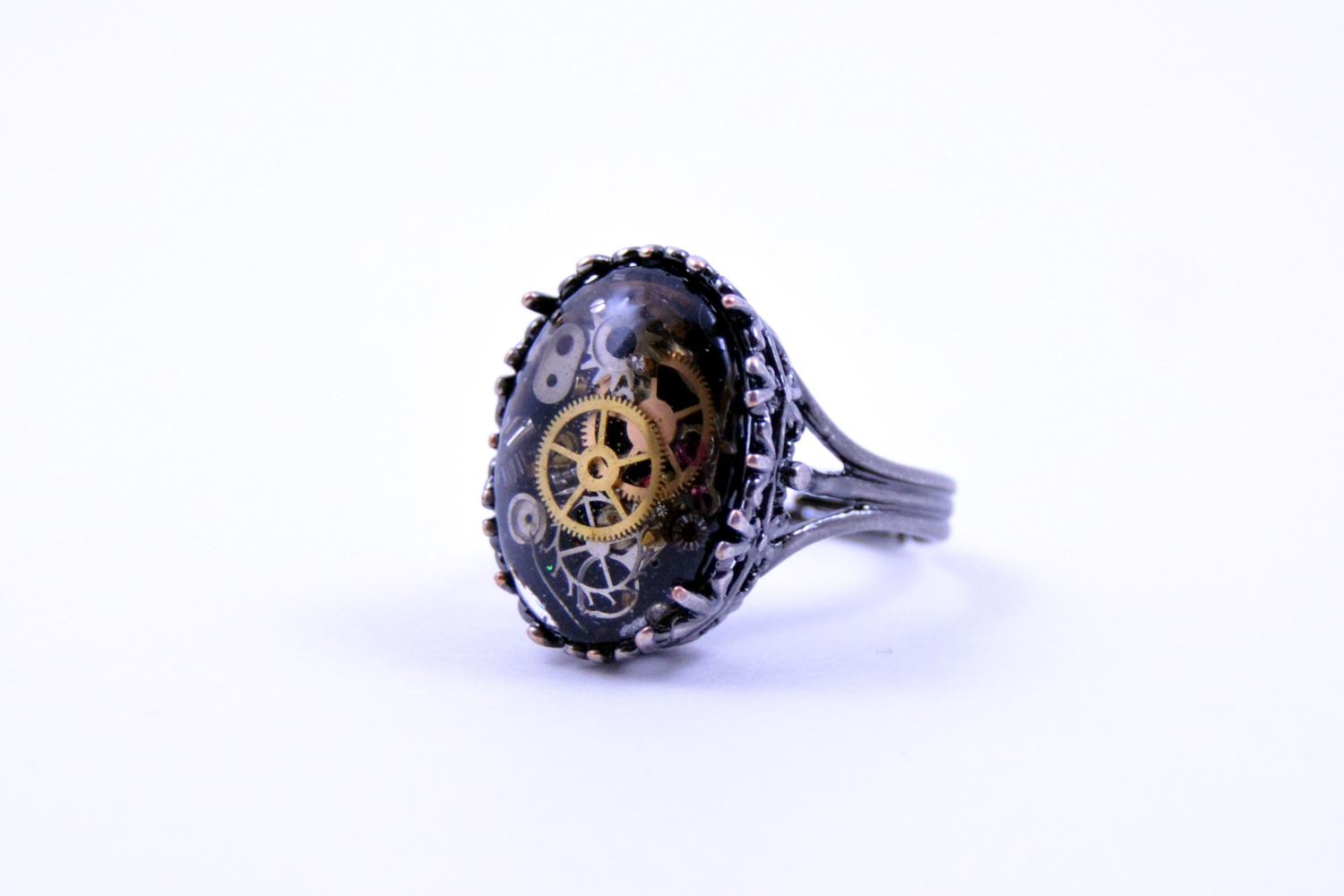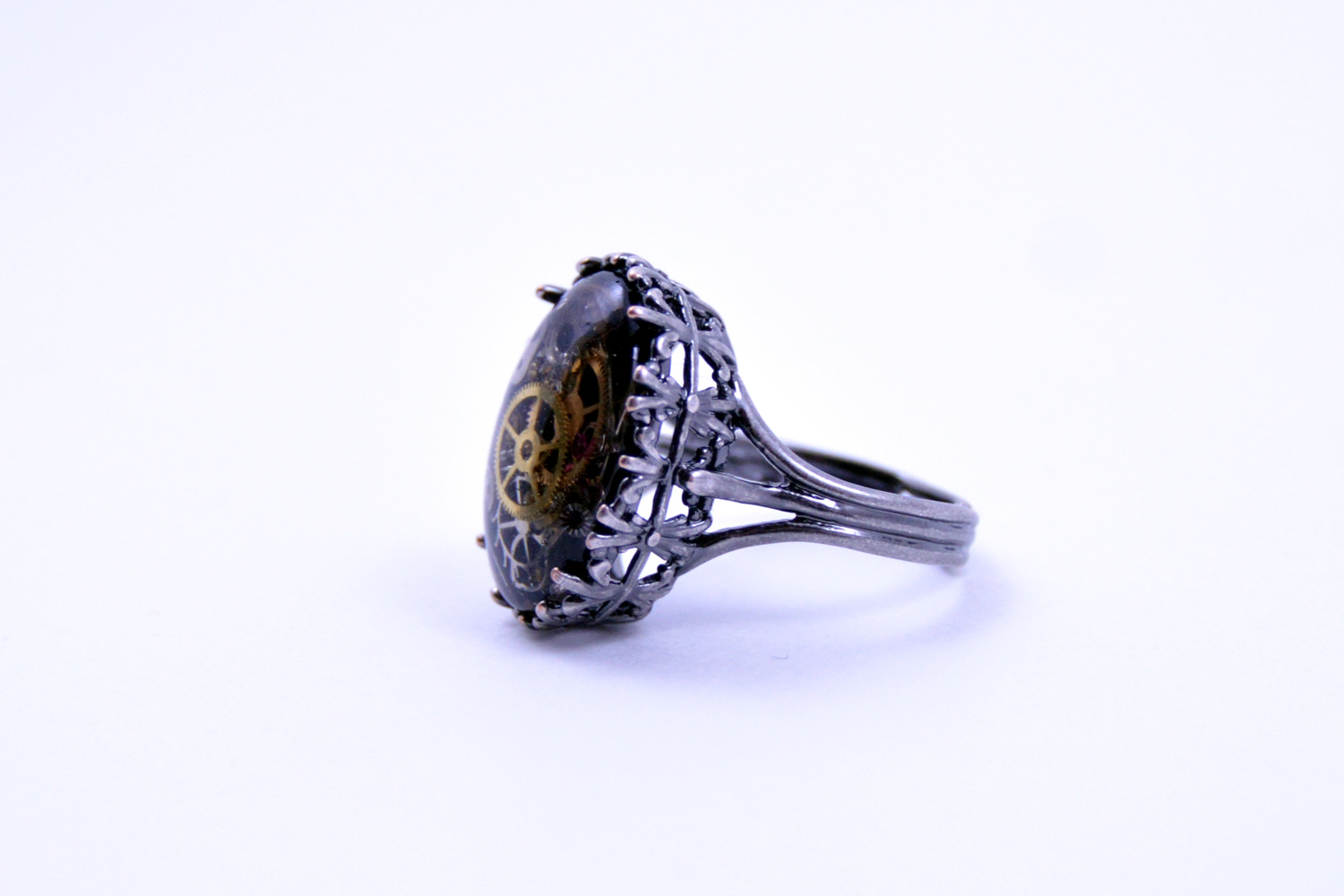 Steampunk Ring made with real watch parts